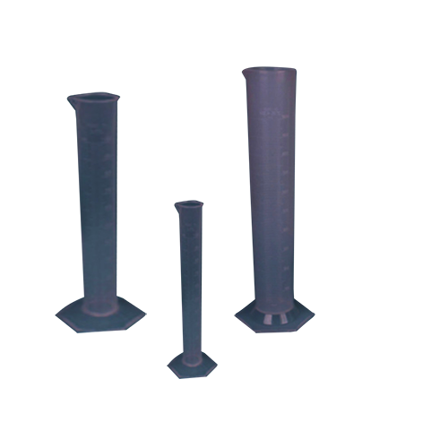 Éprouvette graduée à bec en polypropylène translucide, graduations dans la masse.